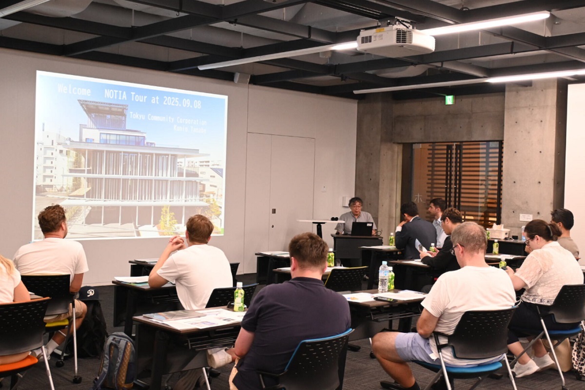 ハンガリーパビリオンの施設管理業務を通じて、ハンガリーの施設運営スタッフの皆さまや施工を担当した株式会社橋本組、TFHD digital株式会社の皆さまに当社の管理業務への関心を寄せていただき、2025年9月8日には、これらの皆さまを当社研修施設「NOTIA」にお迎えし、知識の共有や施設の視察を実施しました。