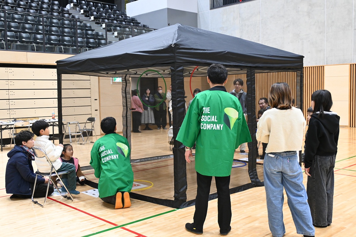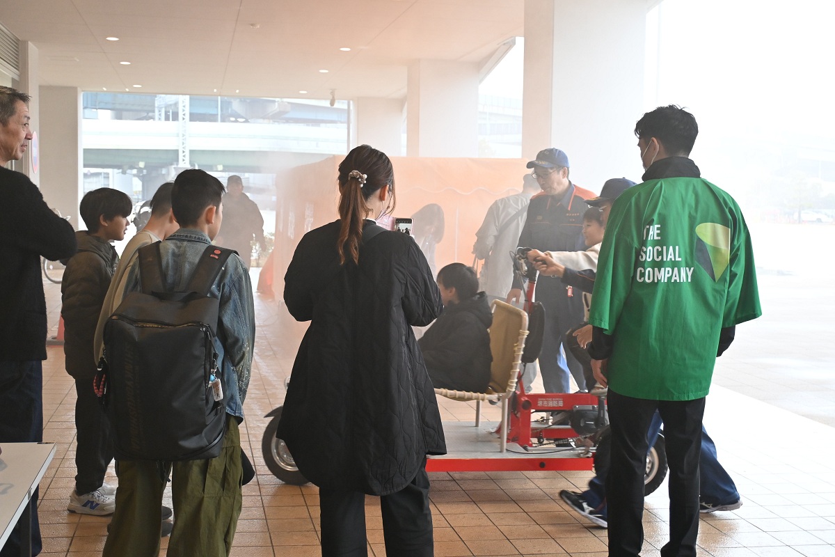 続く12月には、当社が管理業務を担う堺市の大浜だいしんアリーナにて、「健康」と「防災」をテーマにした「大浜フェスタ」が開催されました。“学び”や“楽しみ”の機会創出、交流の場の提供を目的に、当社もさまざまな企画を出展いたしました。「ドローン操縦体験」や「プラネタリウムショー」など、当社の業務に関連性の高いコーナーのほか、「VRによる防災体験」、堺消防署ご協力による「レスキューバイク乗車」、「煙の中の避難体験」といった、市民の皆さまの防災意識向上や防災施策の周知につながる内容を提供し、エリア全体の防災力向上に貢献しました。